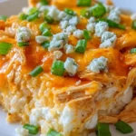 A comforting and spicy Buffalo Chicken Casserole that combines creamy cheese, shredded chicken, and bold buffalo sauce for a delicious meal.