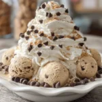 Imagine scooping into a bowl filled with creamy vanilla ice cream, topped with chunks of cookie dough, a swirl of whipped cream, and sprinkled with mini chocolate chips. It’s a dreamy indulgence that feels both nostalgic and luxurious.