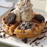 Honestly, who doesn’t love waffles? Now, imagine them loaded with all the goodness of cookies and cream—a classic ice cream flavor that just hits the spot. These waffles are fluffy on the inside and crisp on the outside, acting as the perfect canvas for a scoop of vanilla ice cream.