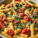 Combine with Pasta: Toss the cooked pasta into the skillet, mixing well to coat it in the creamy tomato sauce. If the sauce feels too thick, add a splash of the reserved pasta water until you reach your desired consistency.