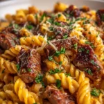 This Creamy BBQ Steak Pasta is a quick and comforting dish featuring tender steak, rich BBQ sauce, and creamy goodness.