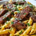 A creamy, spicy, and flavorful pasta dish featuring tender steak and a rich garlic butter sauce, all made in one skillet in under 30 minutes.