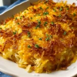 A comforting casserole with crispy cornflakes, tender rotisserie chicken, and creamy hash browns, perfect for family gatherings or weeknight dinners.