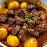 This Hearty Beef and Potato Stew is more than just a meal; it’s an experience that stirs up nostalgic memories of cozy winter evenings and hearty family dinners. From the first simmering sound to the final tender morsel, each step of the cooking process fills your home with warmth and comfort. Each bowlful comforts the soul, making it the perfect dish to embrace those longing for home.
