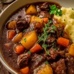 A hearty and comforting Irish stew made with tender beef, fresh vegetables, and rich Guinness stout, perfect for chilly evenings.