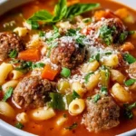 A comforting and hearty Italian Meatball Soup filled with tender meatballs, fresh vegetables, and aromatic herbs, perfect for cold evenings.