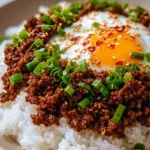 There’s something wonderfully inviting about a bowl of steaming rice topped with a savory mix of ground beef, bold spices, and vibrant aromatics. Picture this: a moist and delectable pile of perfectly cooked jasmine rice that delicately cradles an irresistible mélange of spicy Korean ground beef. The moment a fork pierces through the warm and fragrant layer, a delightful aroma wafts through the air, teasing your taste buds and promising a culinary experience that’s both vibrant and deeply comforting. Each bite unravels layers of flavor, from the gentle sweetness of brown sugar to the warmth of ginger and garlic, seamlessly balanced by a hint of heat from red pepper flakes. It’s an explosion of taste and texture, where the richness of the beef contrasts beautifully with the soft and fluffy rice, delivering warmth that wraps around you like a cozy hug.