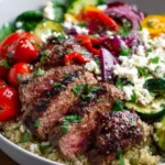 Experience a burst of flavors in this delightful Mediterranean-inspired Steak Bowl featuring perfectly cooked steak, quinoa or brown rice, and vibrant fresh vegetables.