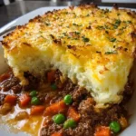 A heartwarming casserole layered with creamy mashed potatoes, seasoned ground beef, and vibrant vegetables, making it the perfect comfort food.